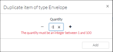 Click the + Sign to add more units of a same parcel type. A dialog box will appear where you can type the quantity of identical items you are including in the order. Click on Add to confirm: