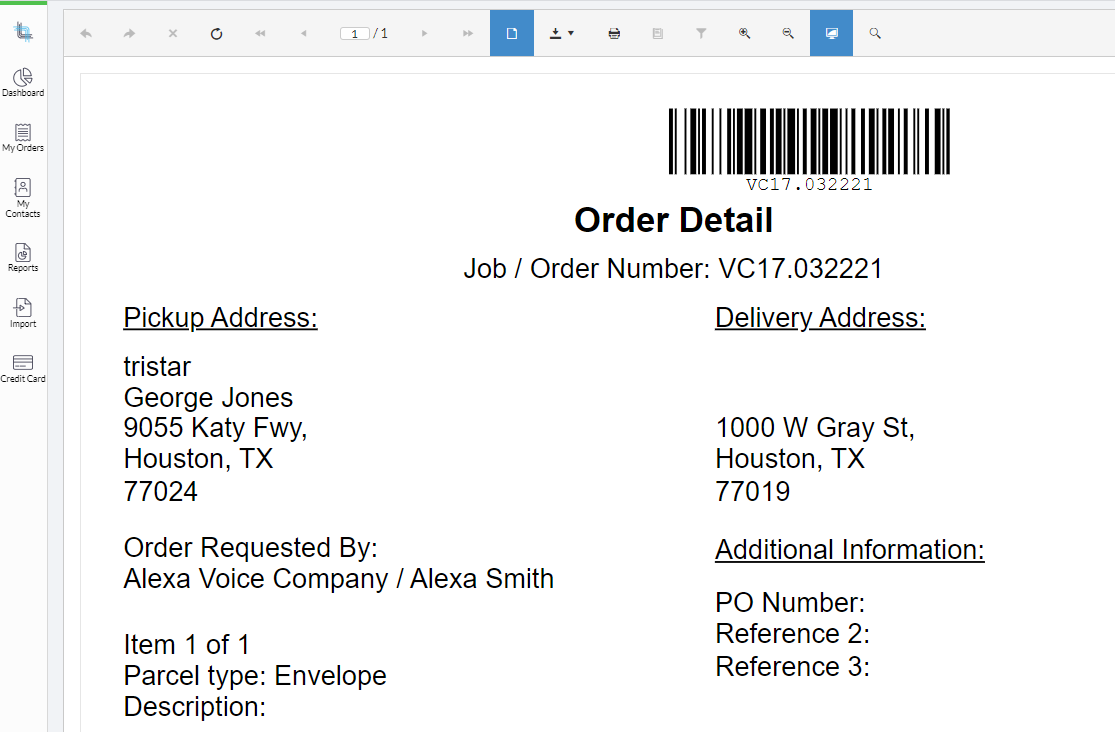 Since many customers have unique requirements with regards to the typical kinds of parcels they ship (from envelopes to skids), this section is likely to contain different information on your screen to what is displayed in this guide. The general behavior will remain the same: