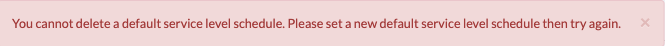 4) If the Service Level Schedule is a default, you will see the following error message and the Service Level Schedule will not be deleted: