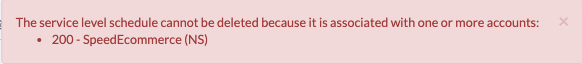 If the Service Level Schedule is used on an Account, you will see the following message with the list of Accounts where the Schedule is used: