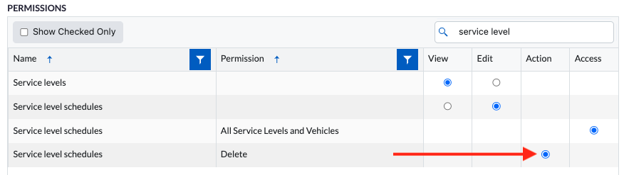 To setup the permission to delete a Service Level Schedule, please review Delete Service Level Schedule permission link.