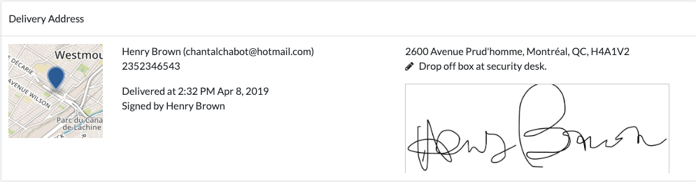 Delivery: If the order has been delivered, the delivery details will be displayed in this section.