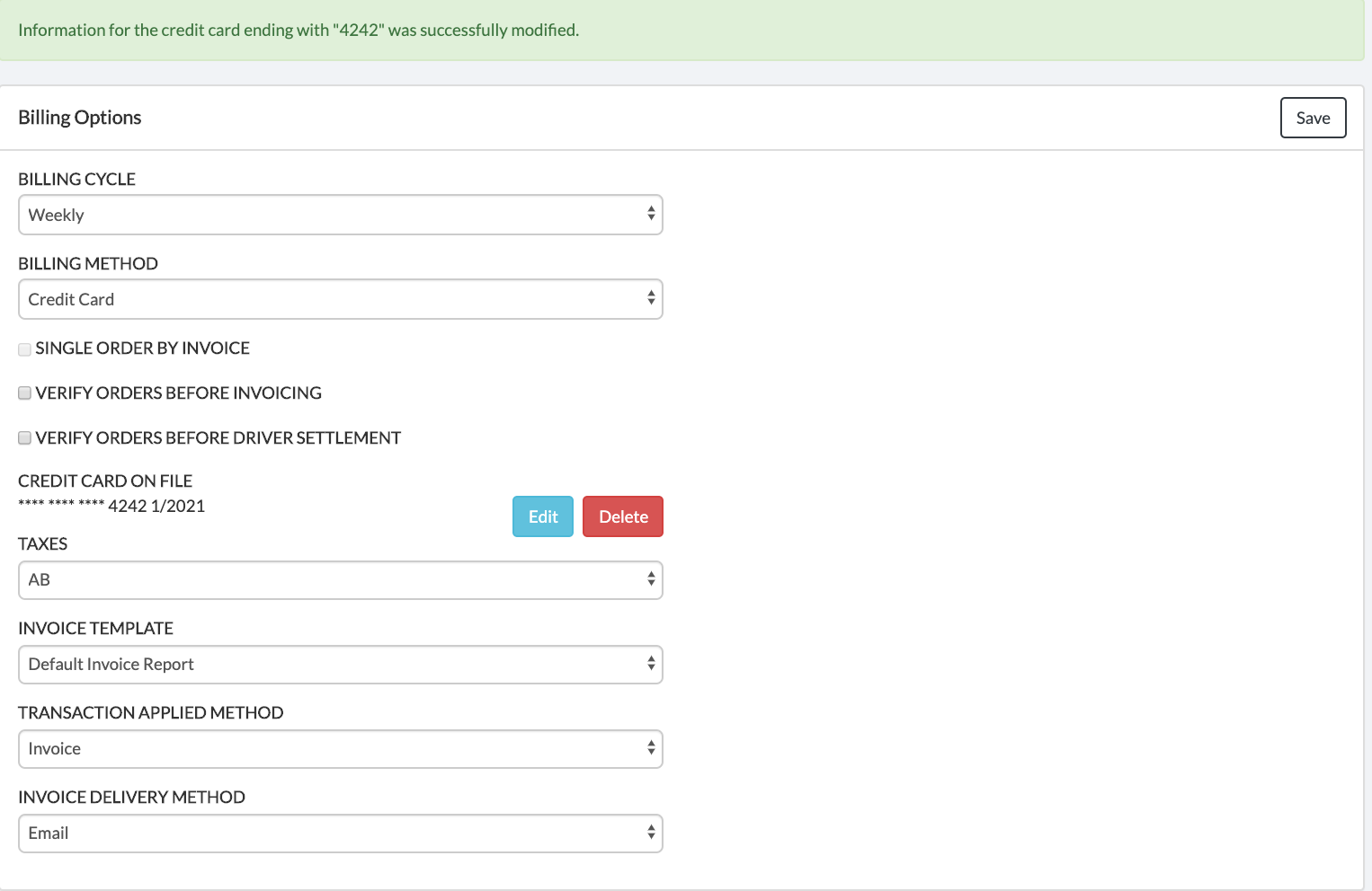 If not, select "Credit Card", save, then re-open the Billing Options to proceed.