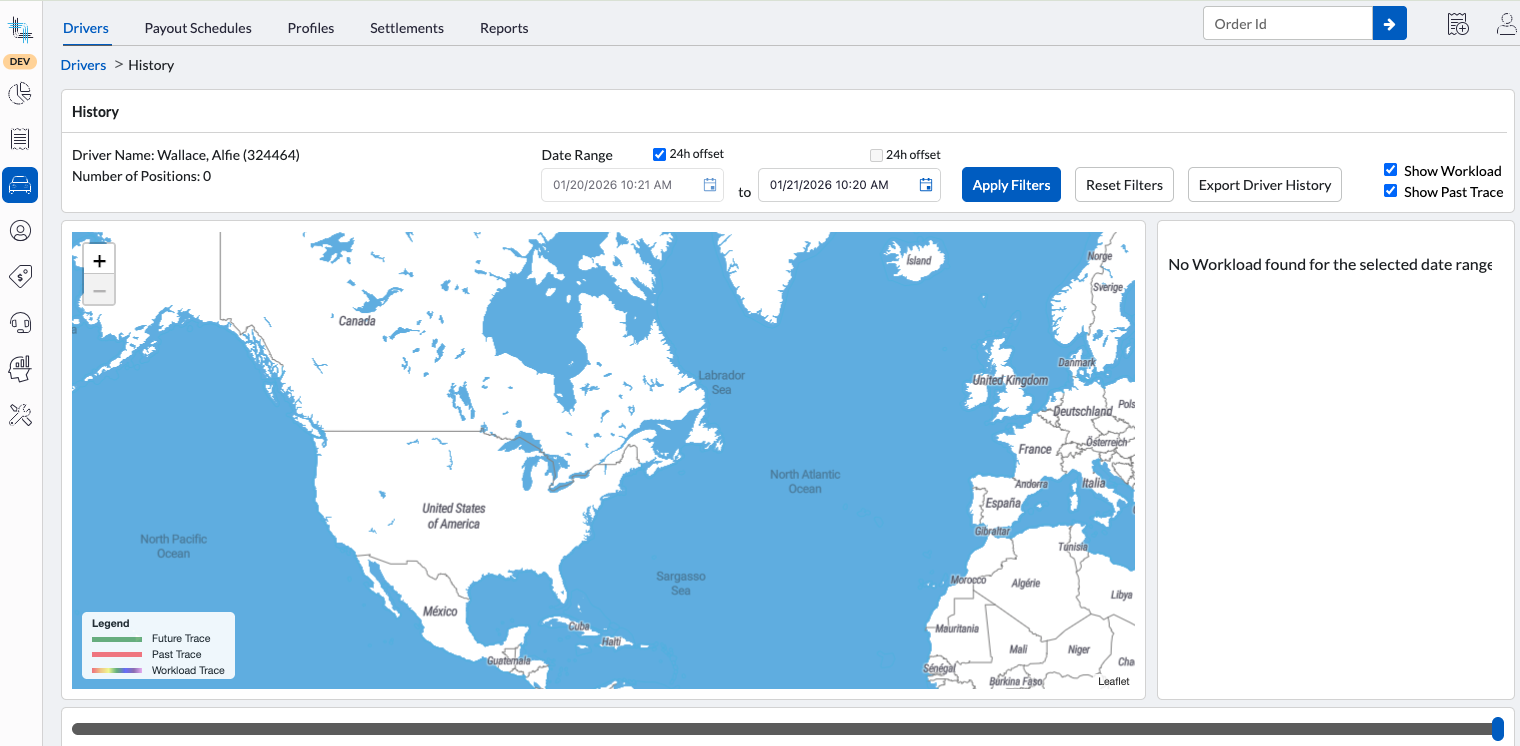 A 24-hour auto offset is now available in the Driver History date range to simplify date entry.