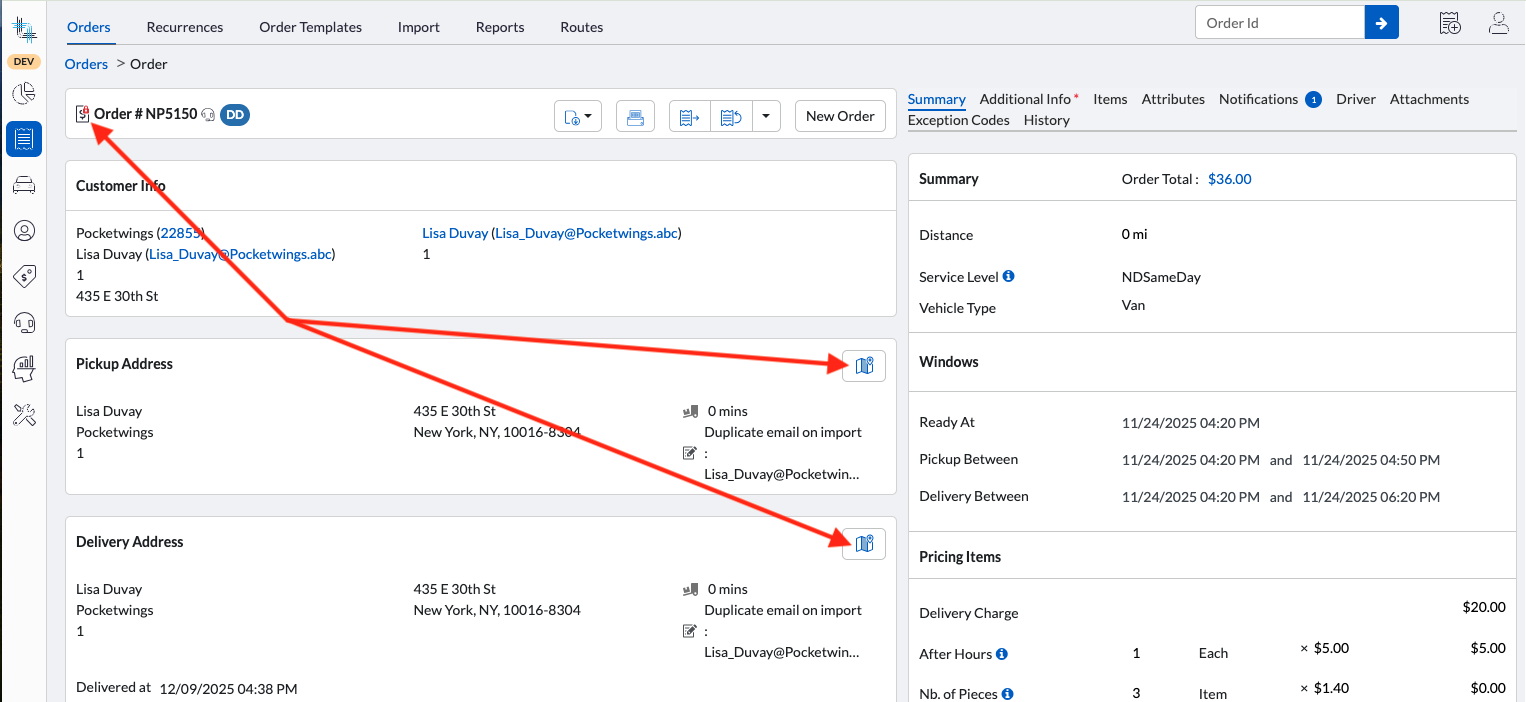 The address map icon (map location, latitude, and longitude) in Order Details is now available even when the order is locked due to invoicing.