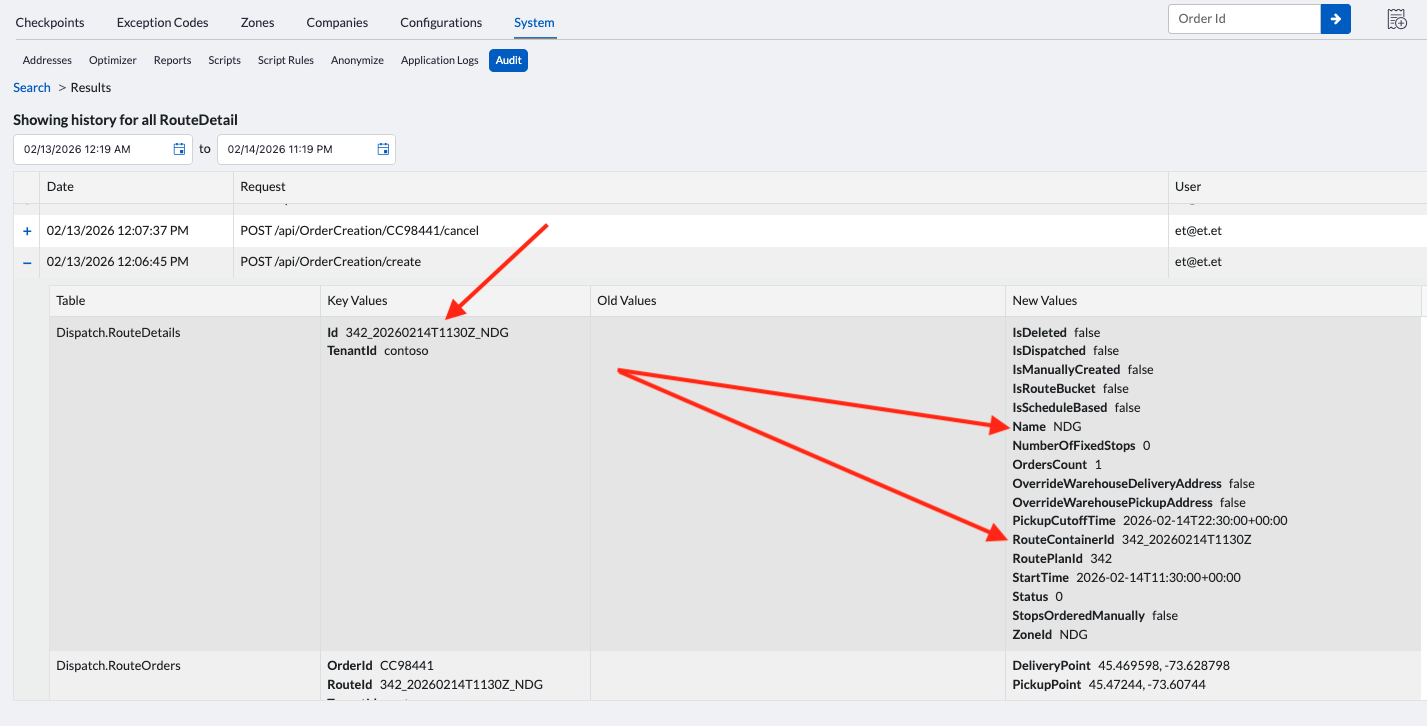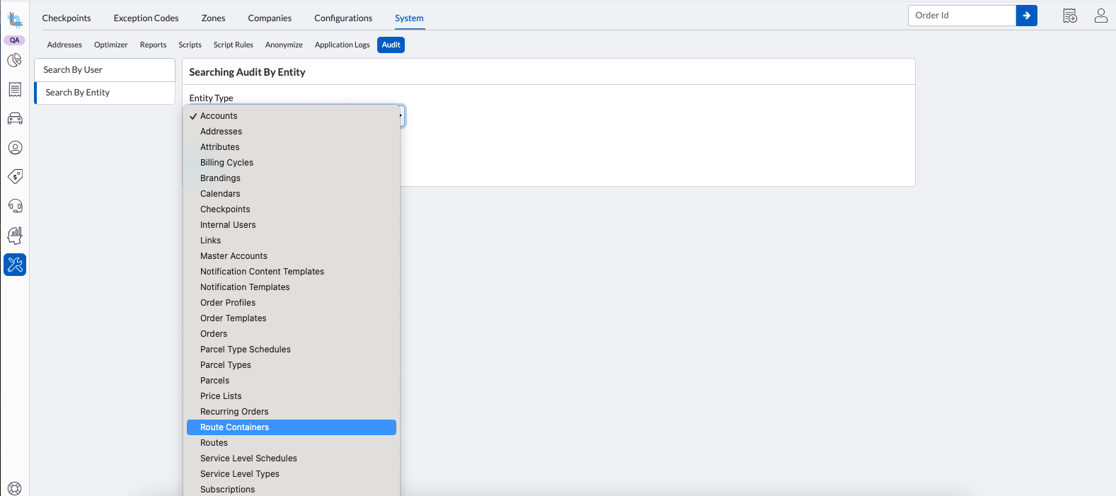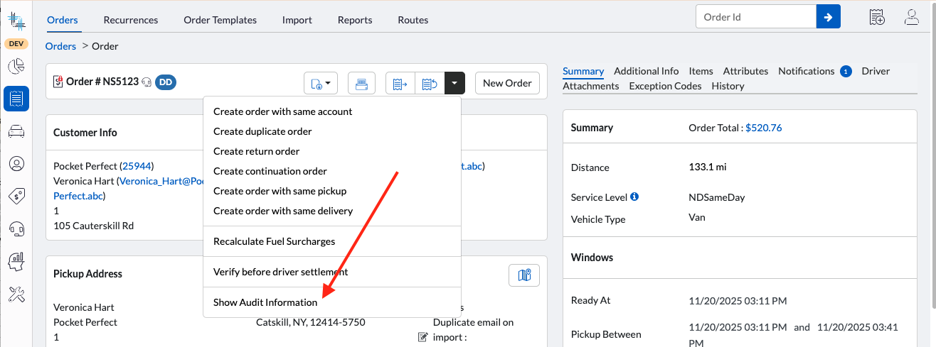 1) The audit log can be accessed from the order details menu by selecting Show Audit Information.