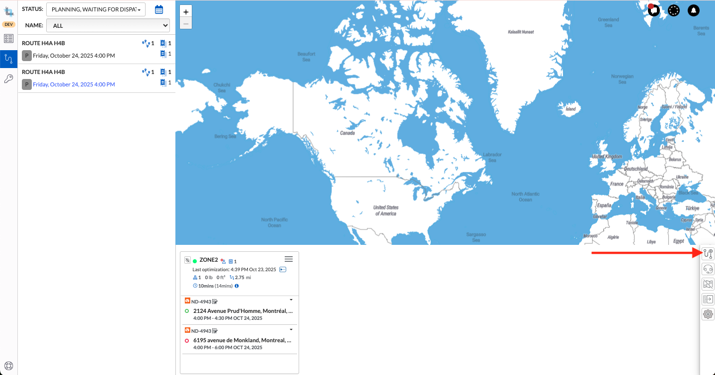- Open the dispatched Route Container on the Dispatch Board.