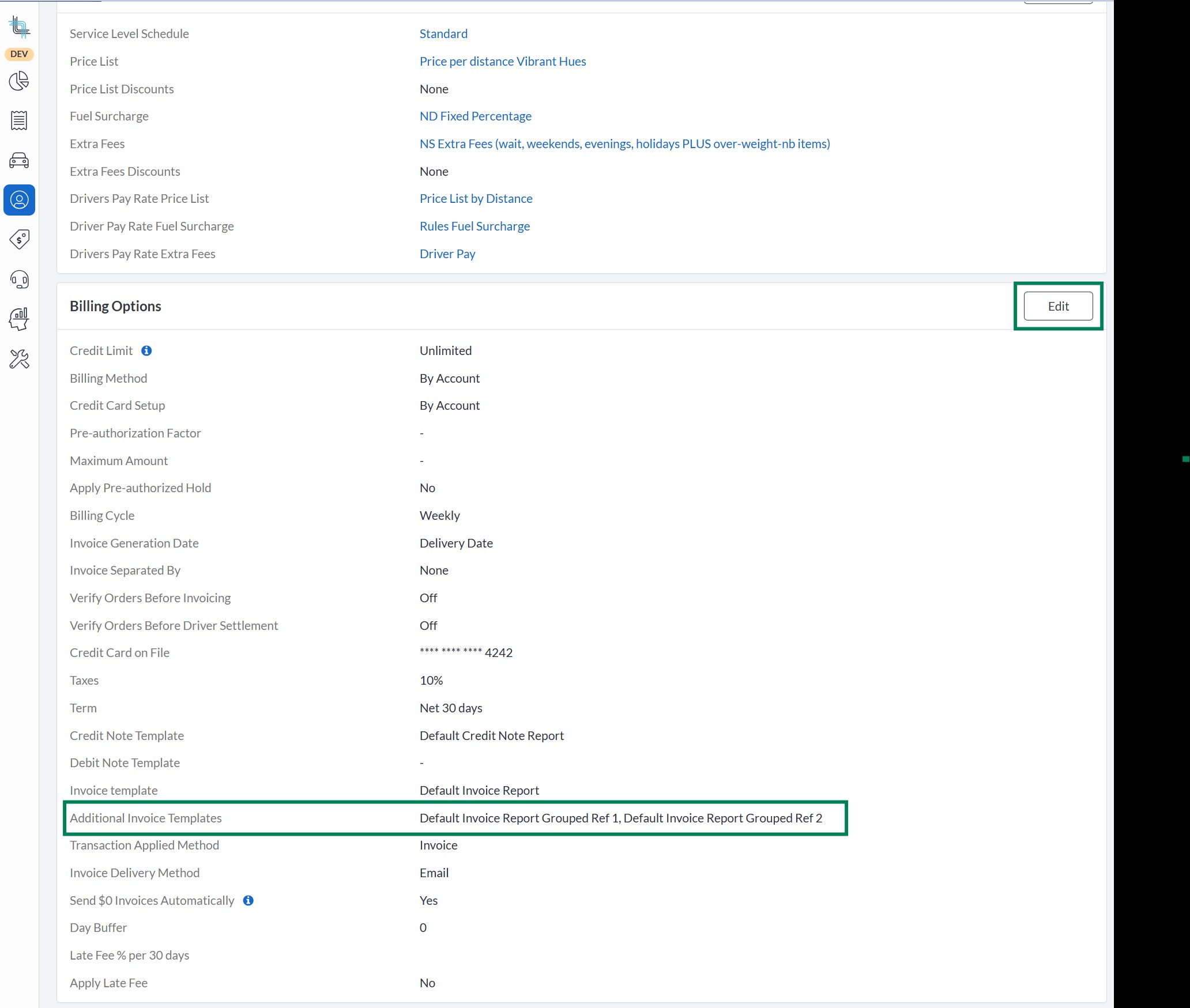 - Open the account in BackOffice and click Edit in the Billing Options tab.