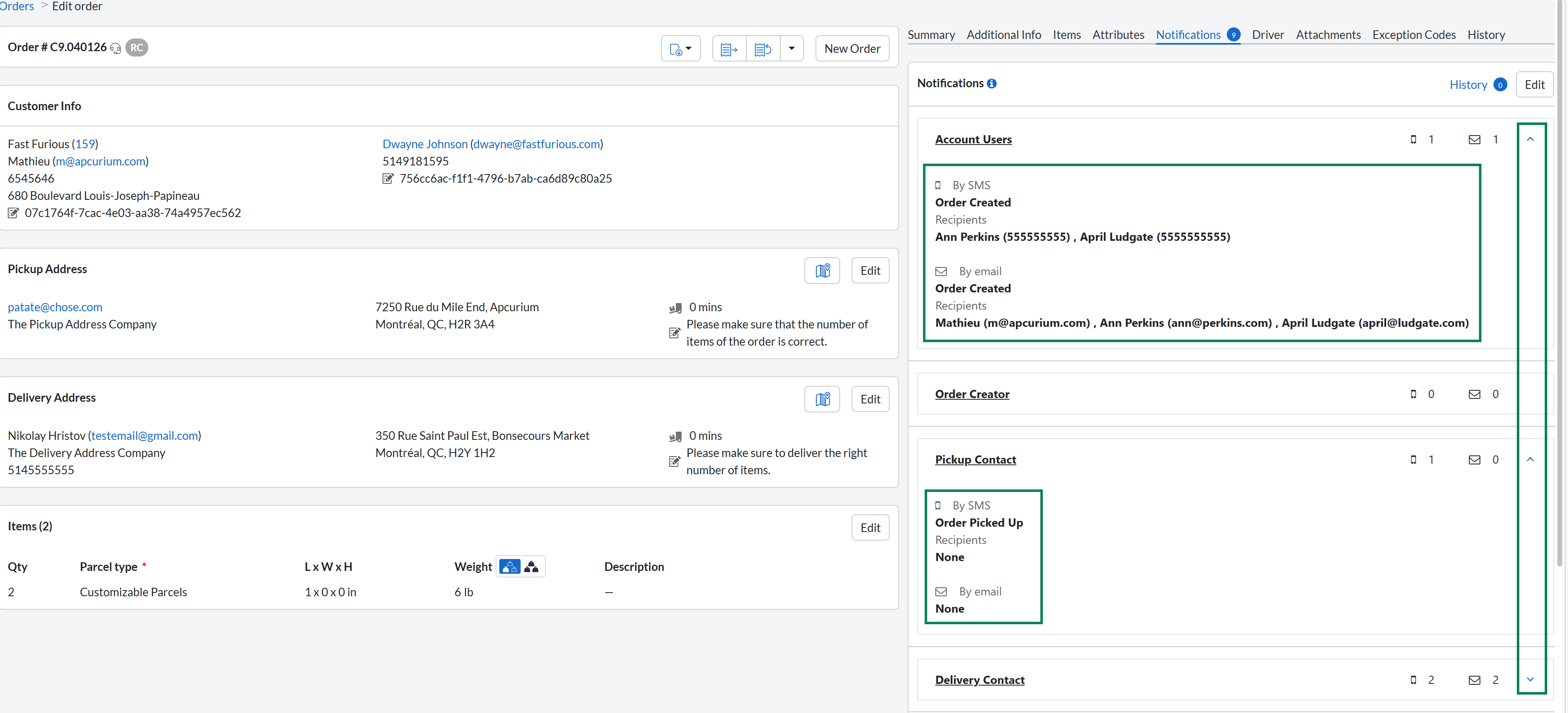 The Account Contact label in the Order Notification section is now Account Users. Hovering over the ℹ️ or phone icon now displays the full list of recipients (name and email/phone).