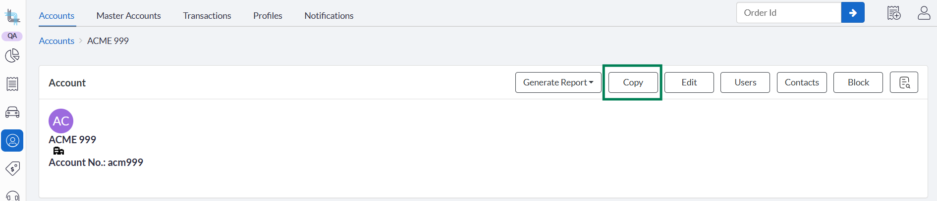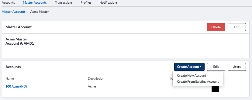 An account can be duplicated directly from the Account Details screen or from a Master Account. When duplicated from a Master Account, the new account will be linked to that master account.